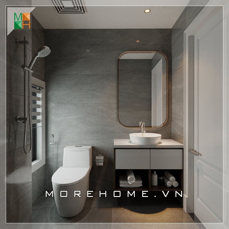 Mẫu thiết kế nhà tắm đẹp thoáng đãng tiện nghi đơn giản nhưng tinh tế ấn tượng.