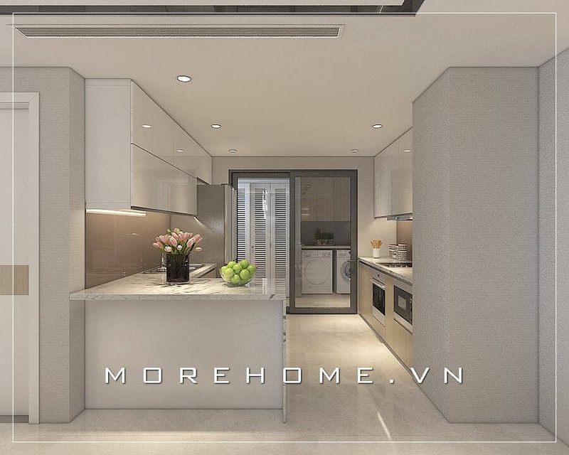 Thiết kế nội thất phòng bếp chung cư hiện đại, đơn giản và tiện nghi cho người nội trợ