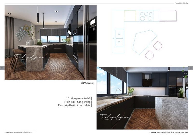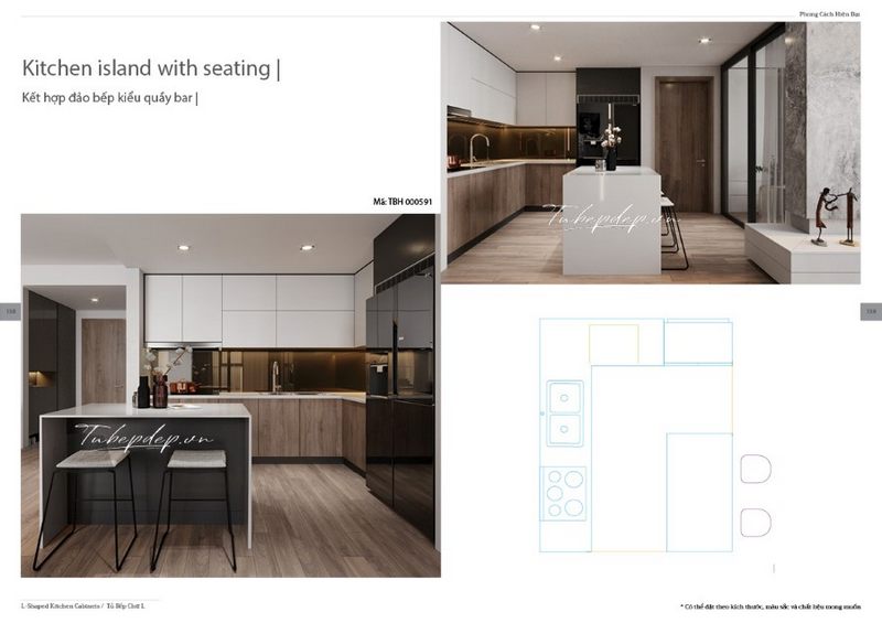 Mẫu thiết kế phòng bếp với nội thất gỗ tự nhiên phối đá nhân tạo cao cấp ** Nói về thiết kế: mô tả thêm về phong cách.