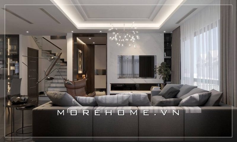 Mẫu thiết kế nội thất chung cư đẹp với tông màu chủ đảo xám trắng mang đến sự sang trọng, tiện nghi
